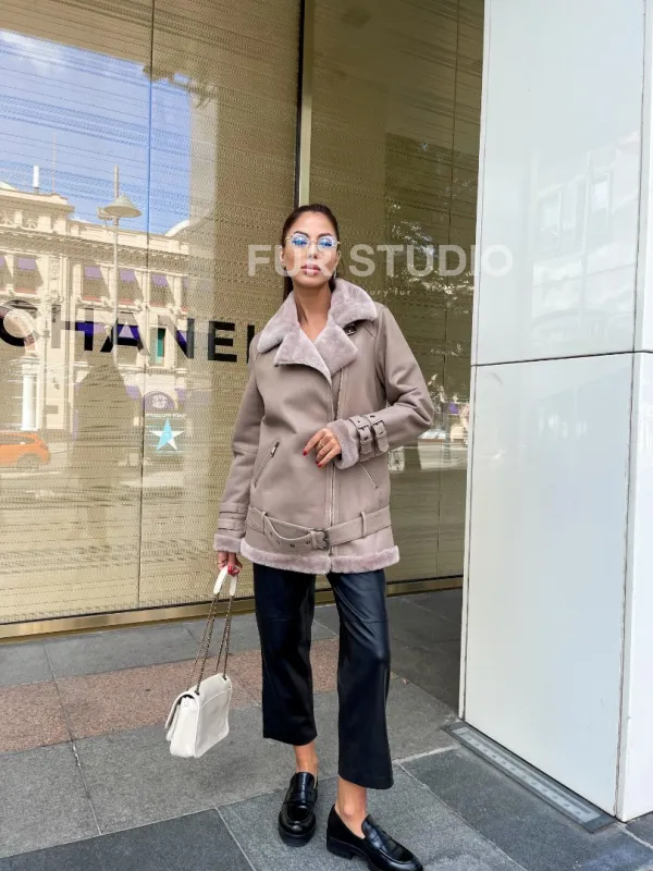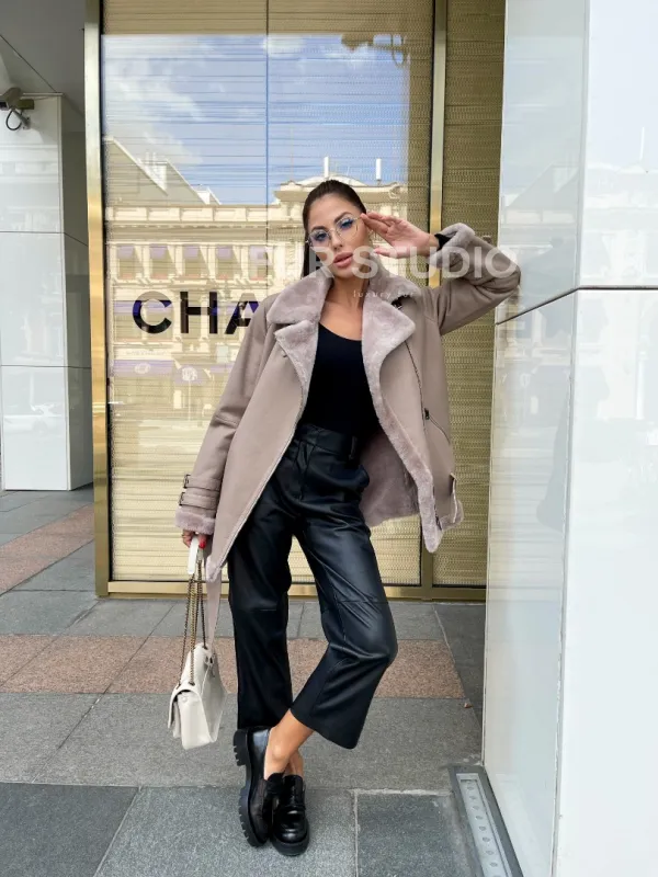 Удобные карманы позаботятся о тепле ручек в непогоду. Прямой крой скрывает недостатки фигуры и зрительно удлиняет силуэт. Роскошный воротник позаботится о тепле шеи и подчеркнет ее изящество. Ремни на рукавах делают образ экстравагантным. Купить авиатор дубленку из натуральной овчины в бежевом оттенке могут современные девушки, которые любят выглядеть стильно в любое время года.