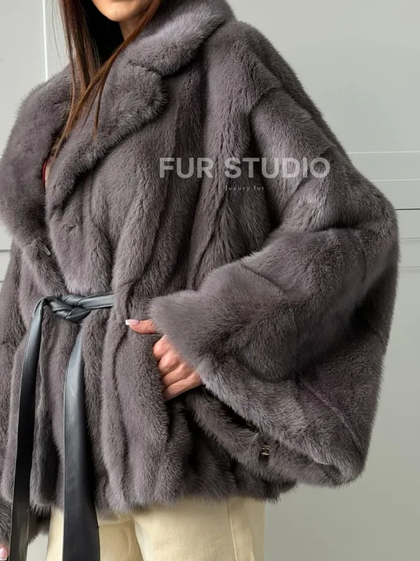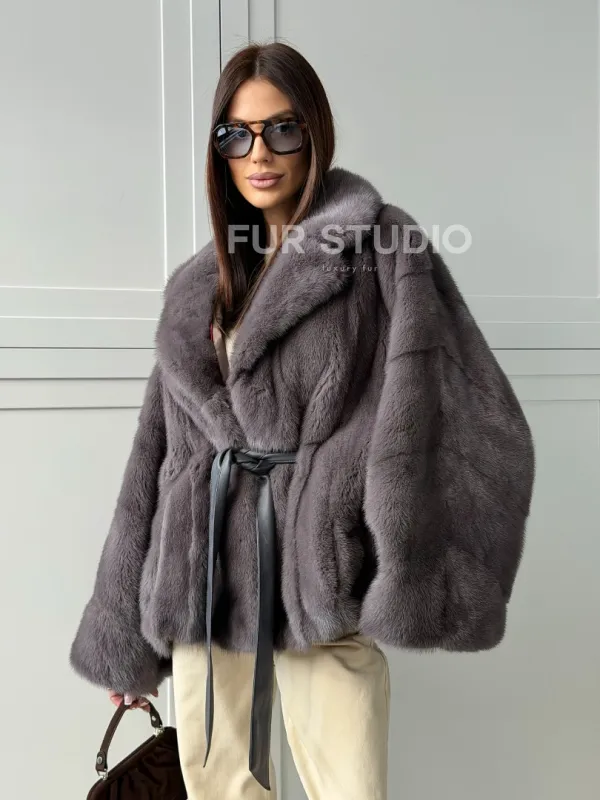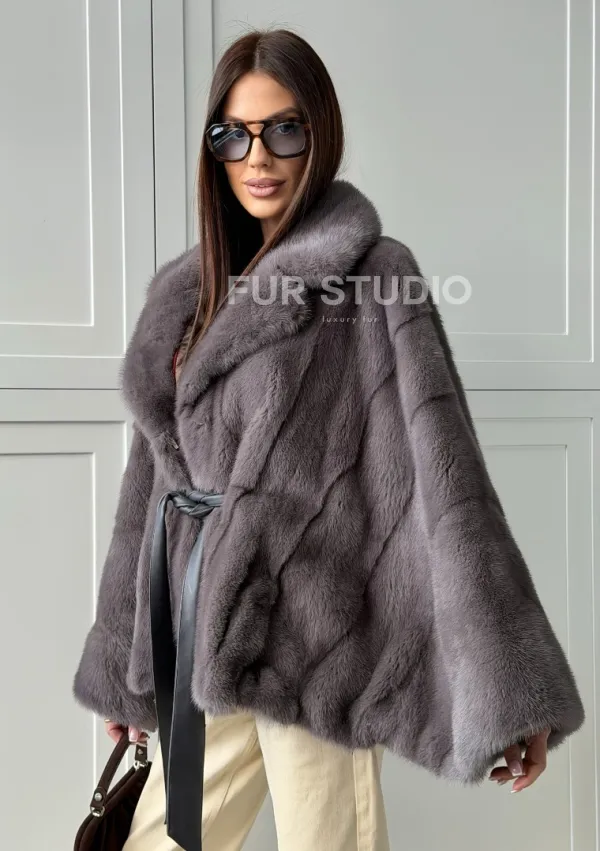 Мех данной шубы аукционная норка, цвет серый. Предлагается в размерах от 40 до 62 (oversize). Длина модели 60-65 см, что выгодно подчеркивает фигуру девушек. Эта модель идеально подойдет для девушек и женщин, предпочитающих роскошные натуральные меха.