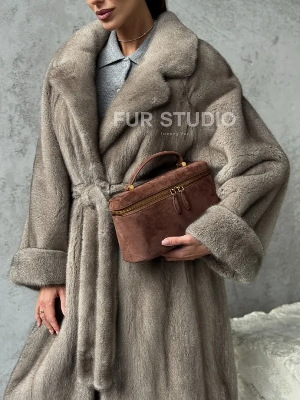 Длинная норковая шуба - цвет серый 102396