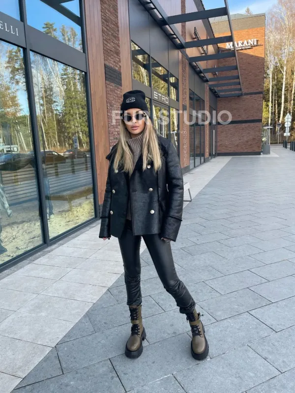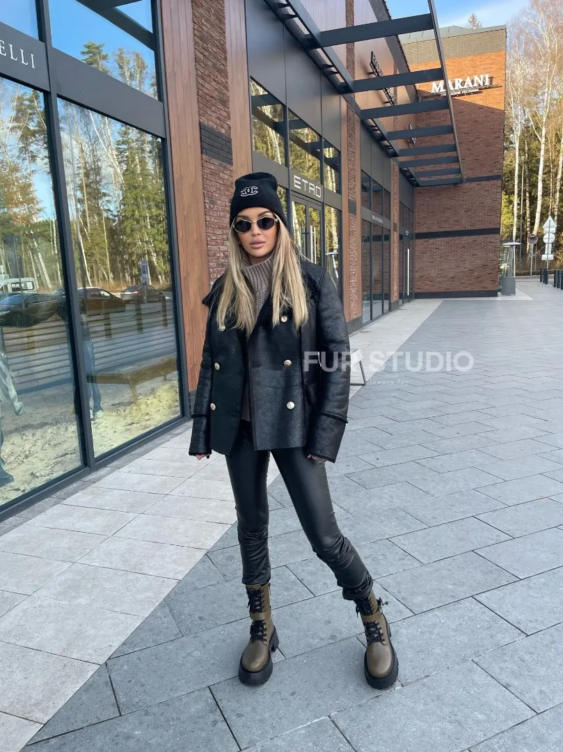 Воротник стойка защитит шею от непогоды и подчеркнет ее изгибы. Черный цвет отлично сочетается с любым оттенком волос и глаз владелицы. Добавьте к образу неординарную сумку и грубую обувь - ваш look будет гармоничен. Купить дубленку из натуральной овчины в стиле милитари могут девушки, которые любят выглядеть экстраординарно и не боятся экспериментировать.