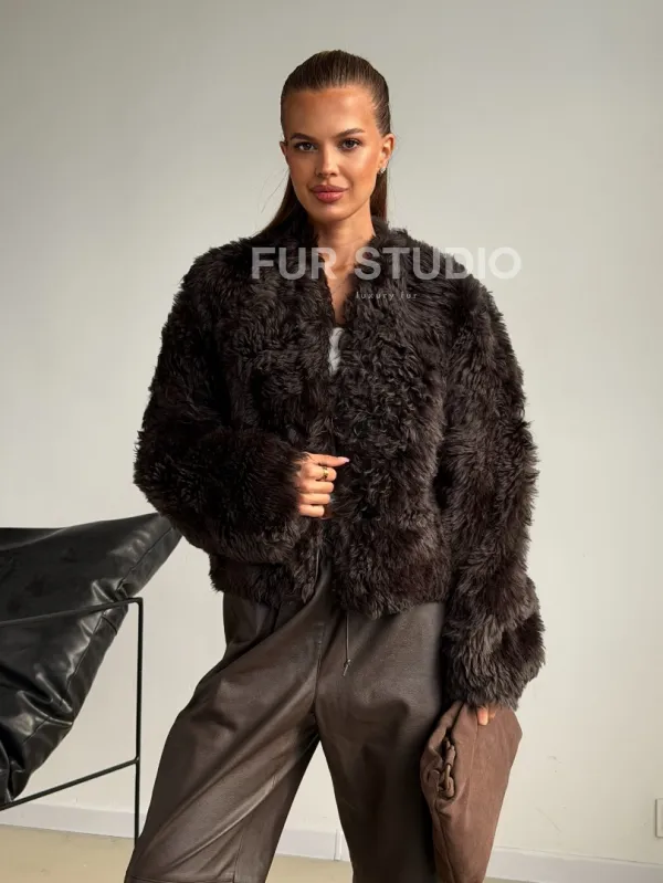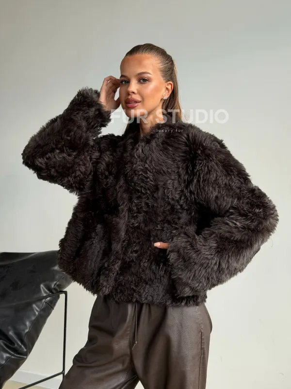 Дубленка кроп-топ из овчины калган 102600