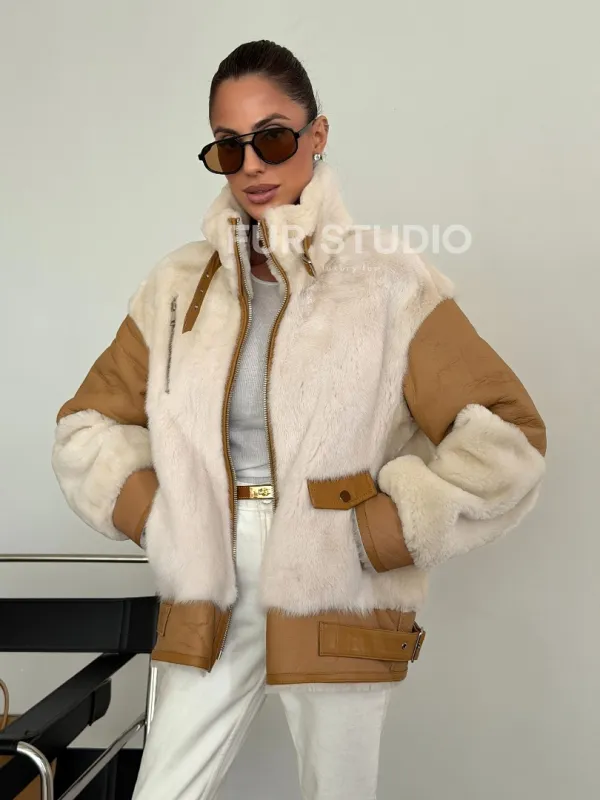Комбинированная дубленка из норки и овчины 102612