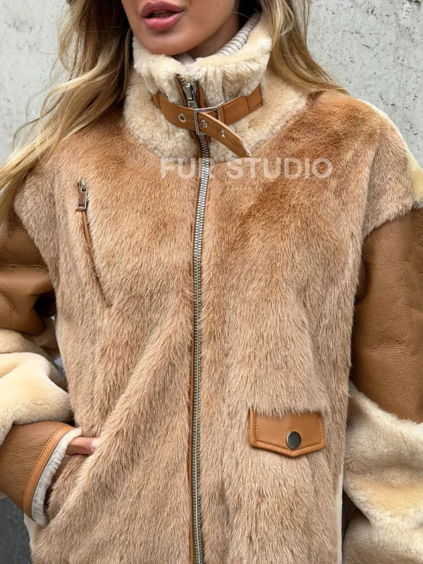 Комбинированная дубленка из овчины и норки доступна для покупки в нашем шоуруме Furs Studio в , а также предлагается удобная доставка во все города России. Обогатите свой гардероб этой дубленкой, которая прослужит вам многие годы, добавив немного роскоши в ваш повседневный образ.