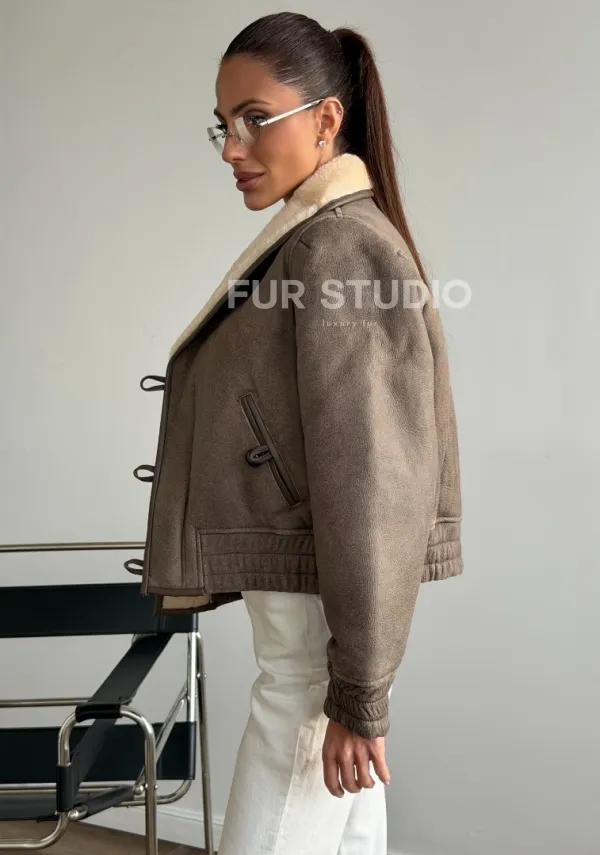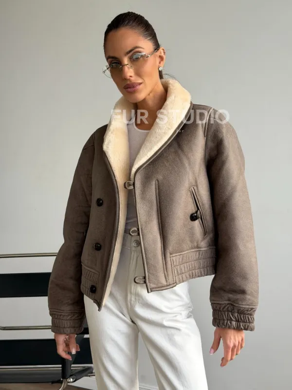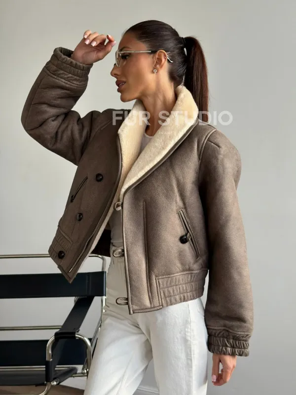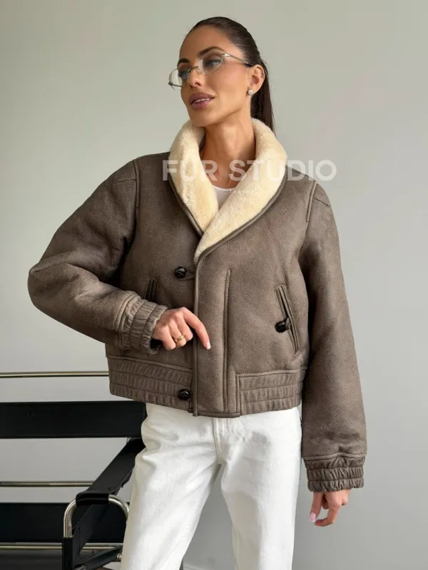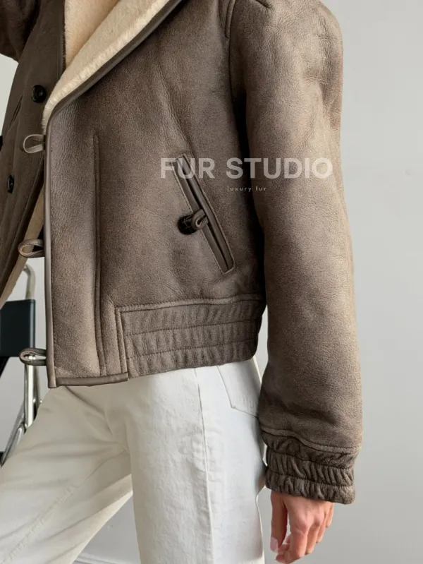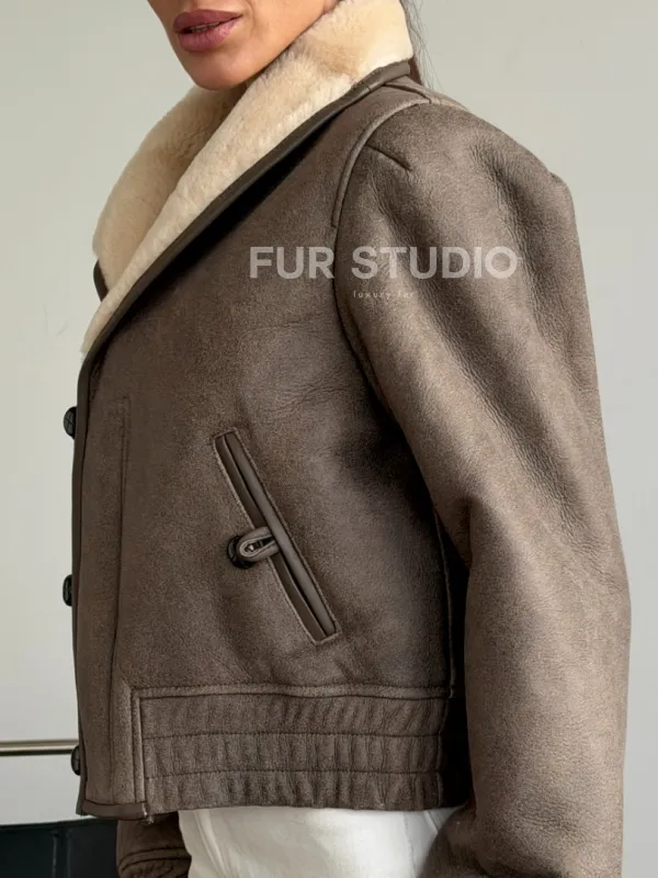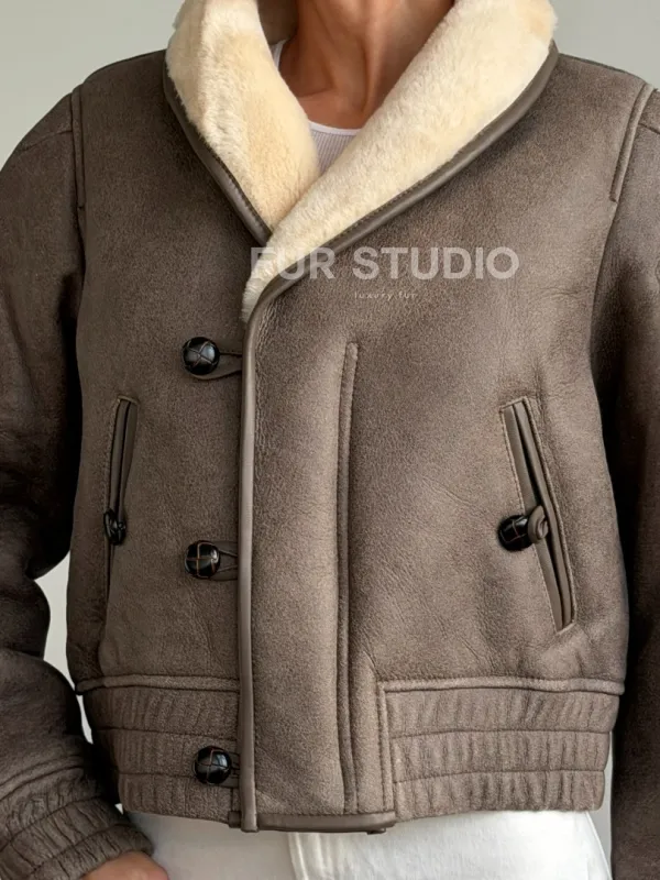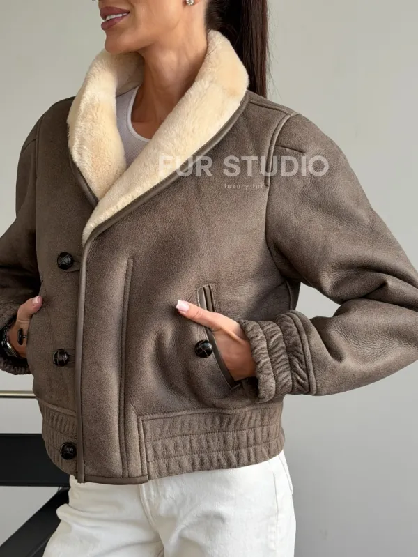 Короткая дубленка - воротник шаль 102627