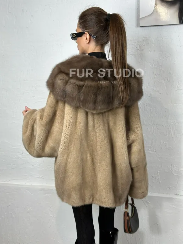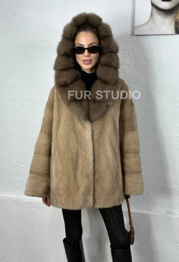Норка автоледи с капюшоном куница - цвет пастель 100715