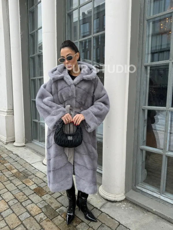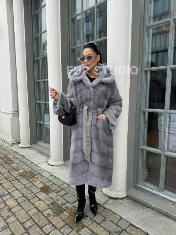 Норка кимоно паркет с капюшоном - цвет серый сапфир доступна для покупки в нашем шоуруме Furs Studio в . У нас так же есть доставка во все города России. Добавьте немного роскоши в свой гардероб с этой шубой, которая будет служить вам многие годы.
