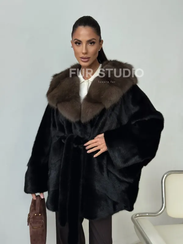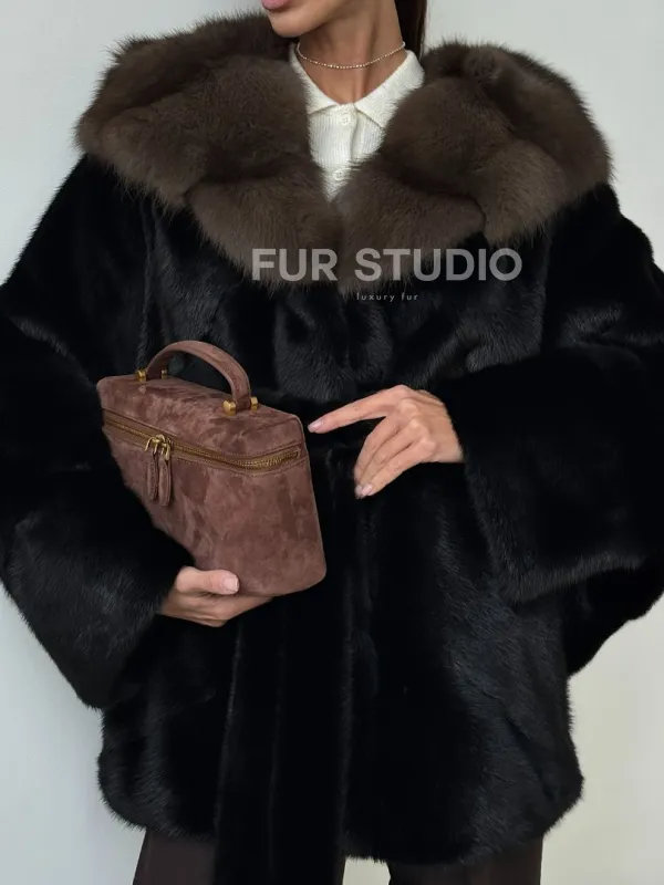 Норковый полушубок с капюшоном - летучая мышь 102399