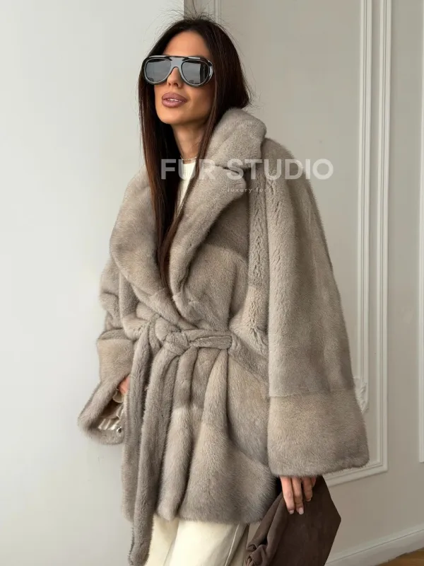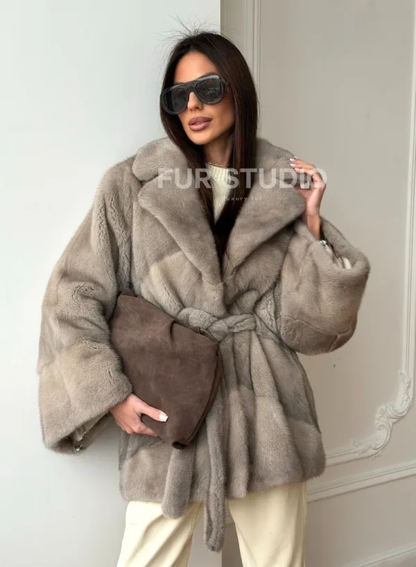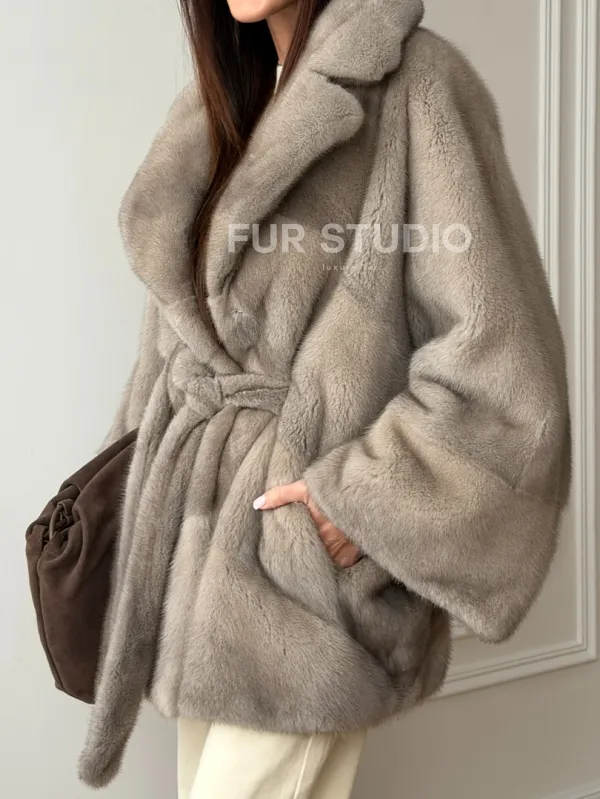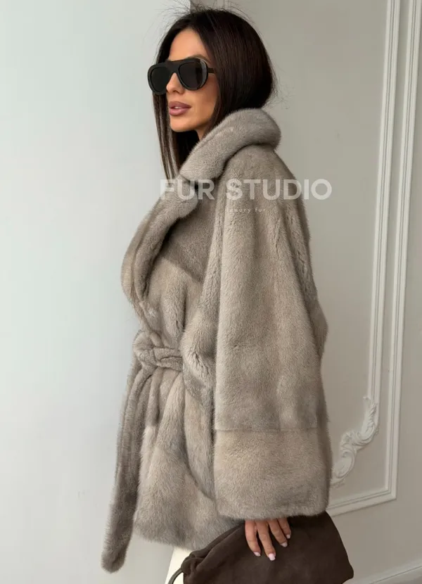 Норковый полушубок в натуральном цвете Silver 102562