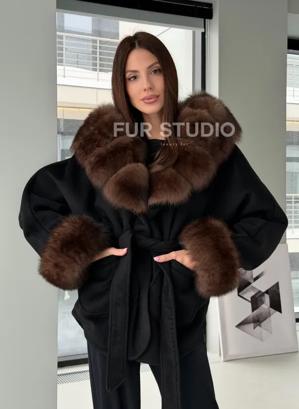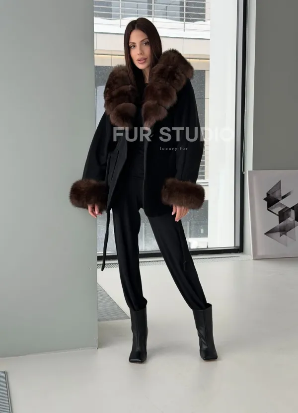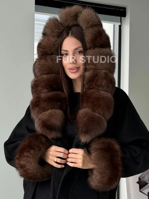 Пальто с капюшоном из финского песца 102906