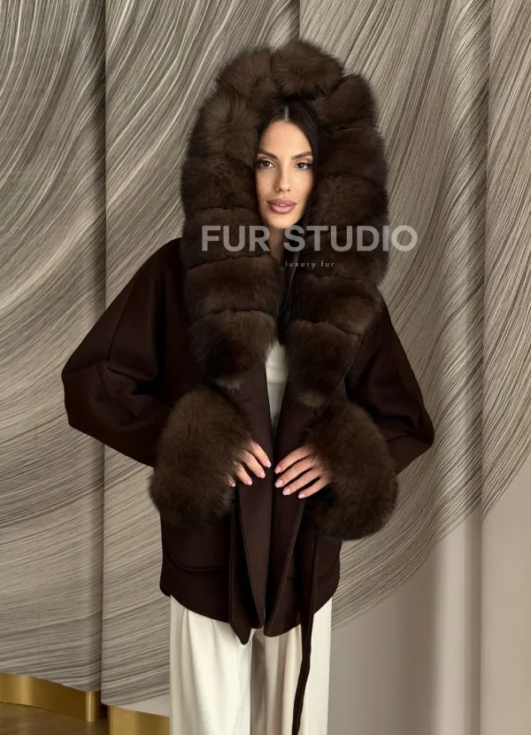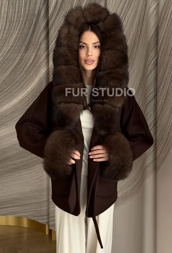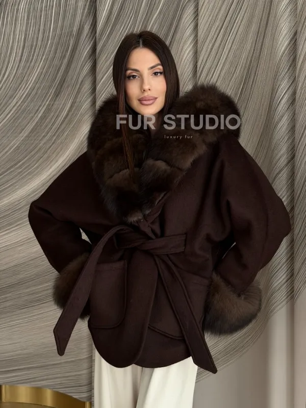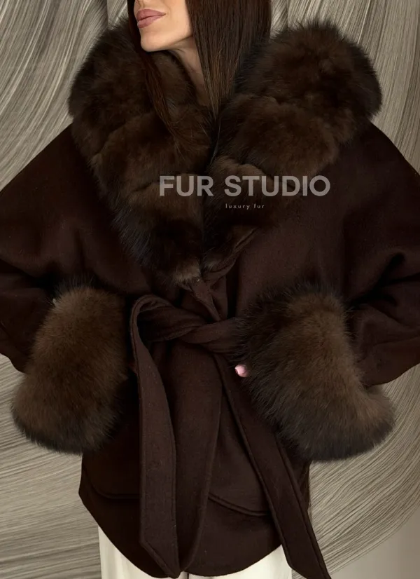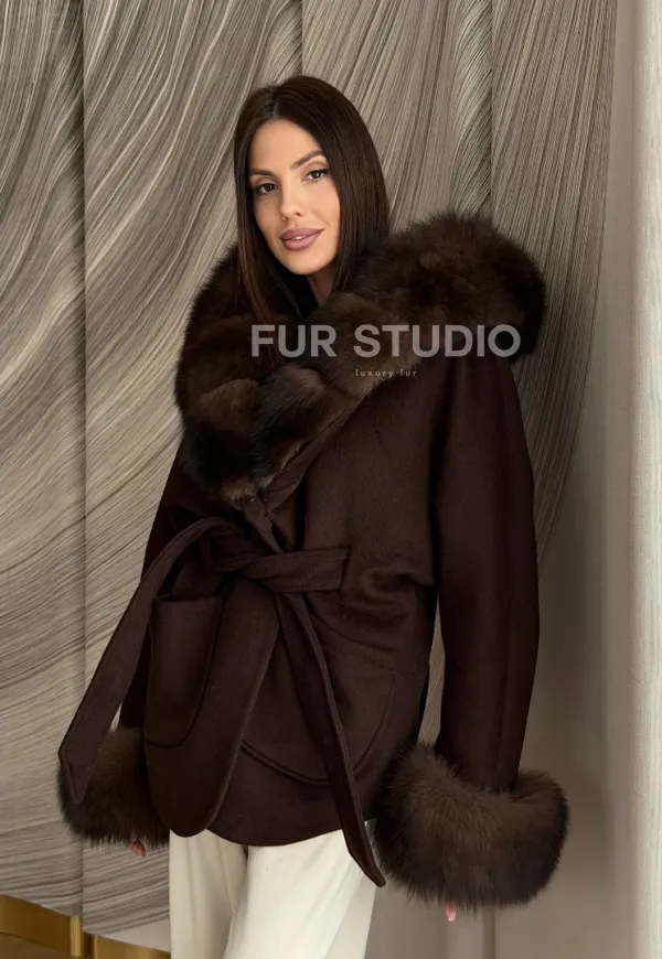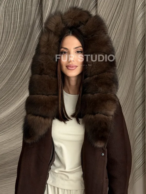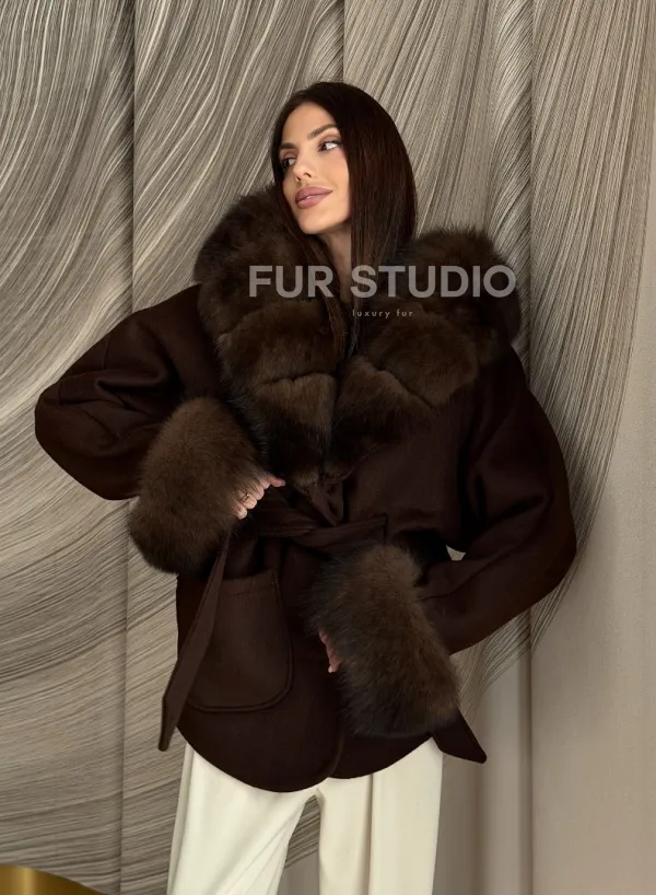 Пальто с мехом песца под соболь 102907