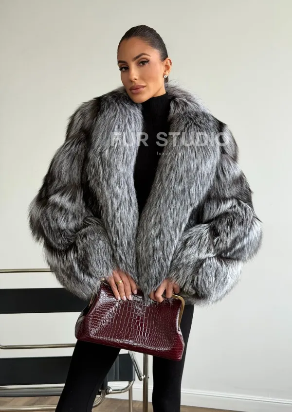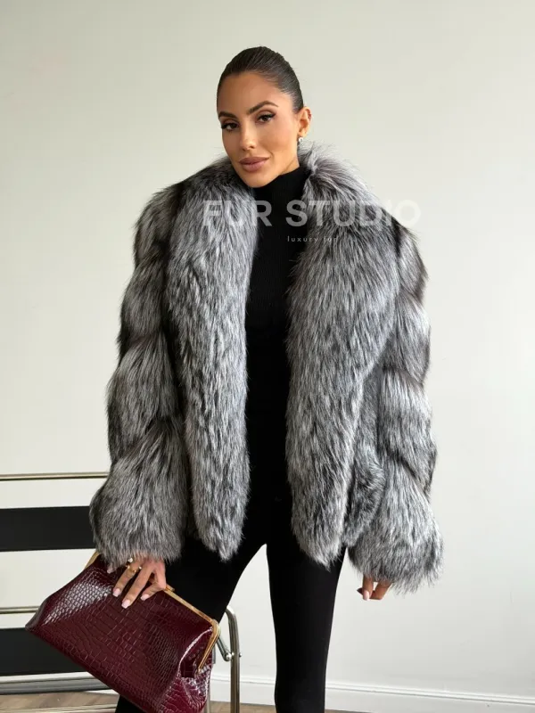 Мех данной шубы лиса, цвет серый. Предлагается в размерах от 42 до 48. Длина модели 55-60 см, что выгодно подчеркивает фигуру девушек. Эта модель идеально подойдет для девушек и женщин, предпочитающих роскошные натуральные меха.