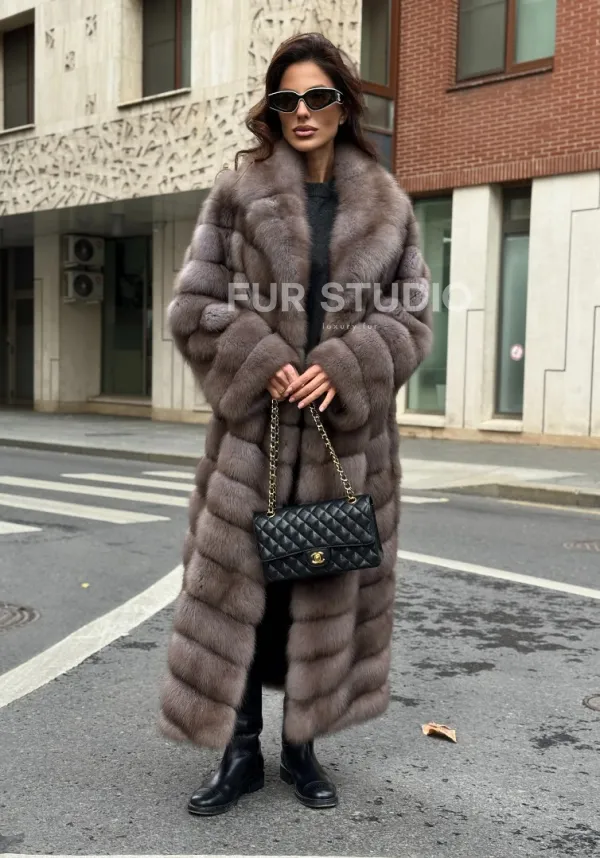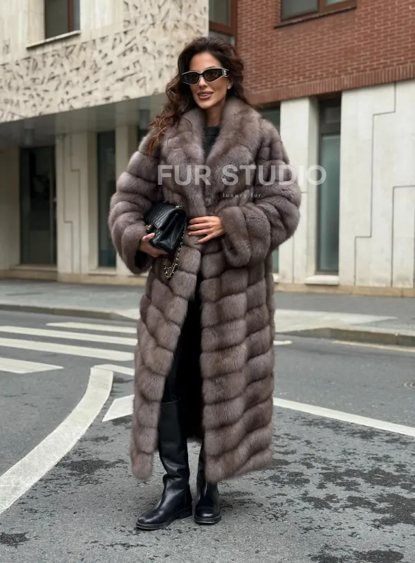 Шуба из меха куницы в цвете Truffle 102286
