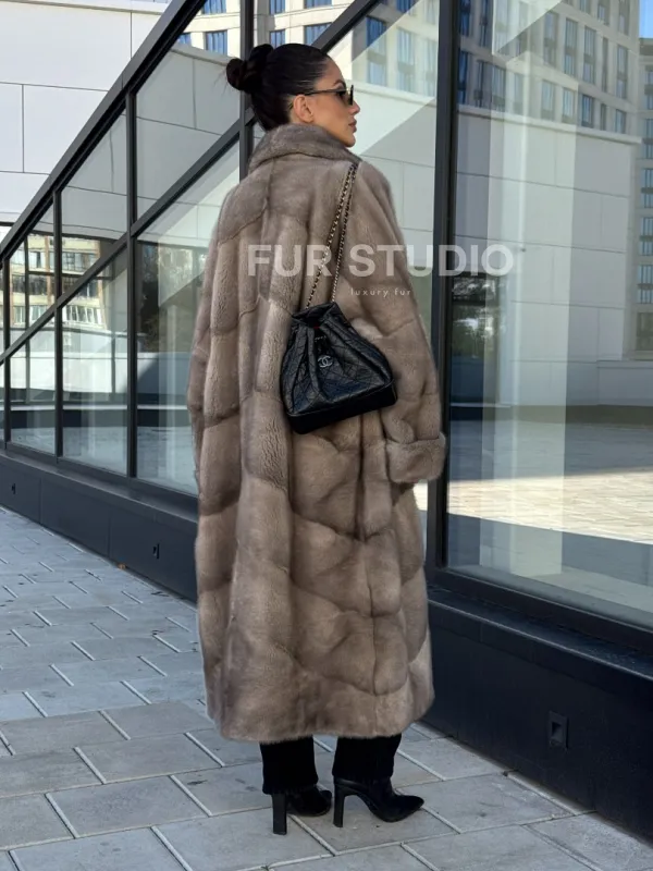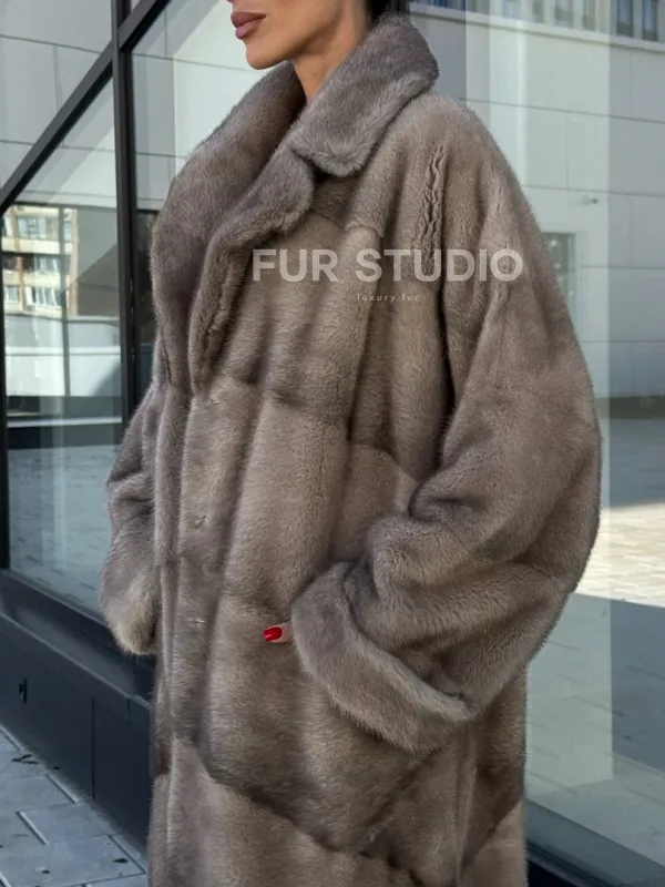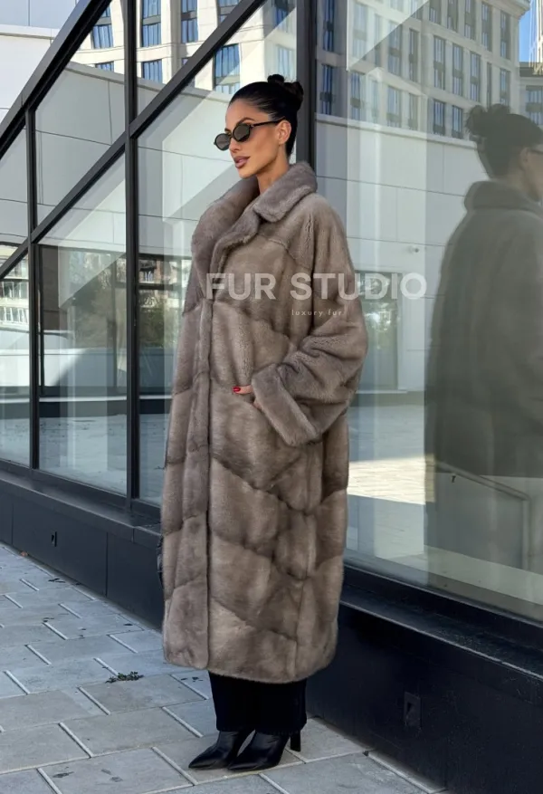 Шуба из меха норки в стиле «Oversize» - цвет сильвер 100990