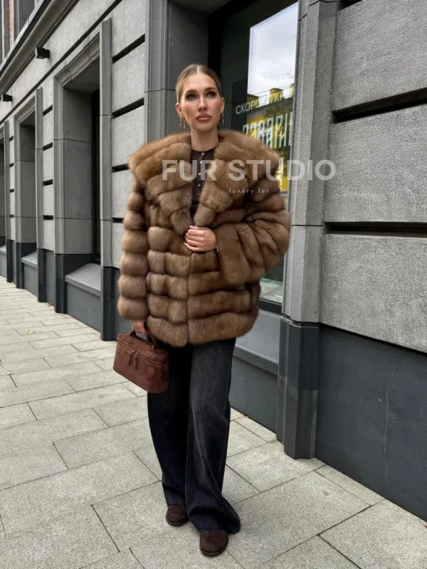 Шуба из натурального меха куницы с капюшоном 102364