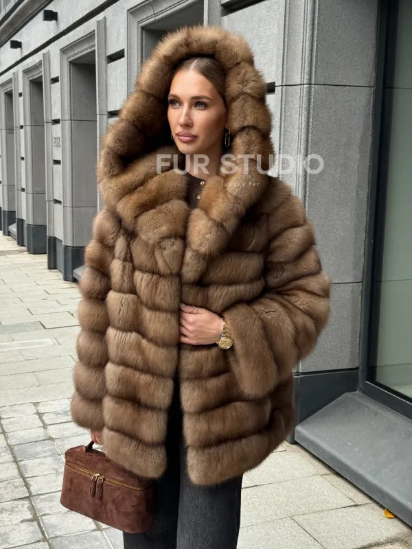 Шуба из натурального меха куницы с капюшоном доступна для покупки в нашем шоуруме Furs Studio в . У нас так же есть доставка во все города России. Добавьте немного роскоши в свой гардероб с этой шубой, которая будет служить вам многие годы.