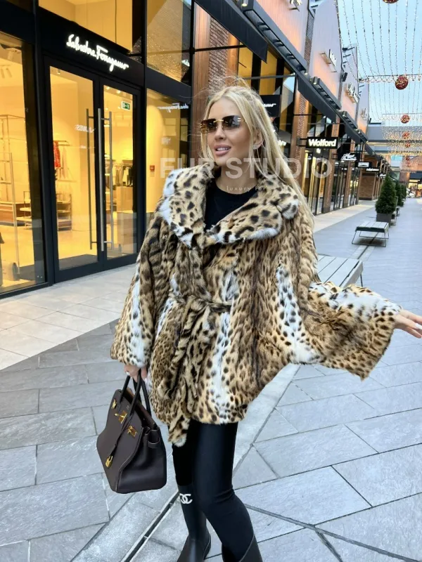 Шуба из оцелота под леопард модель «Летучая мышь» 100095