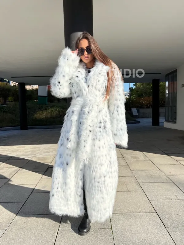 Удлиненная шуба из экомеха под рысь 100294