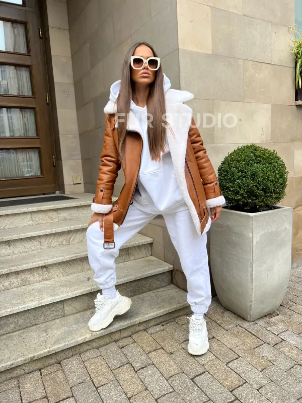 Удобные рукава не сковывают движения, что комфортно при вождении транспортного средства. Качество кожи гарантирует, что изделие будет радовать владелицу долгие годы. Добавьте к образу оригинальную сумочку и стильную обувь, будете выглядеть дорого и изысканно. Купить женскую дубленку авиатор в цвете виски могут женщины, которые следят за модой и идут в ногу со временем.