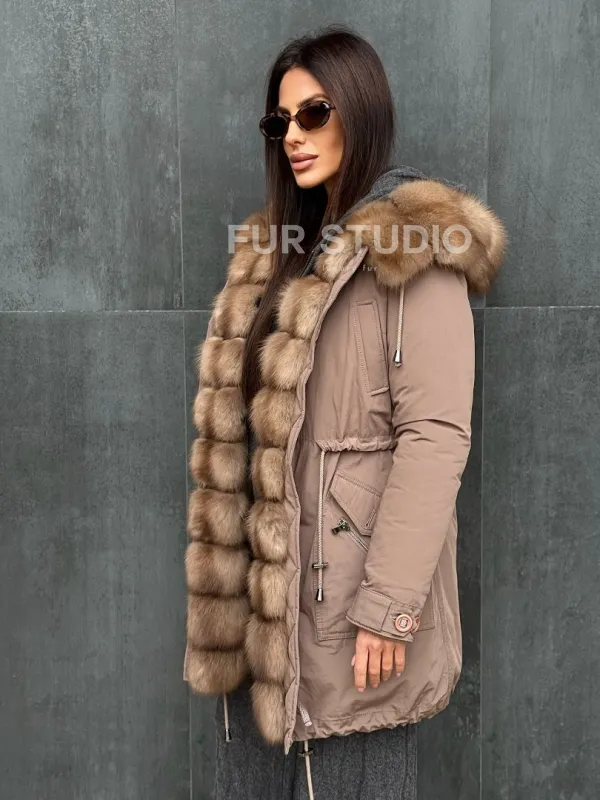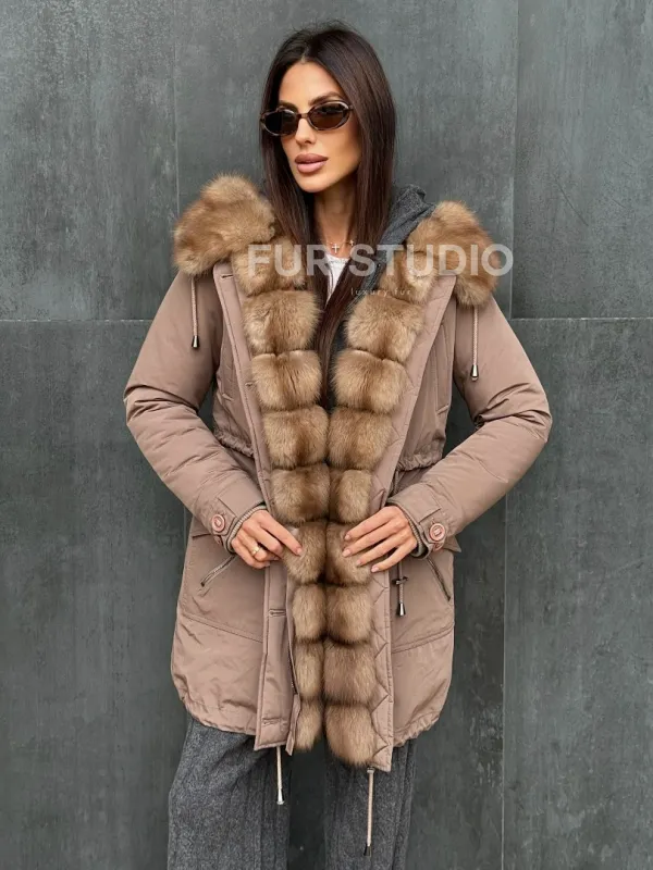Женский пуховик с мехом куницы 102412